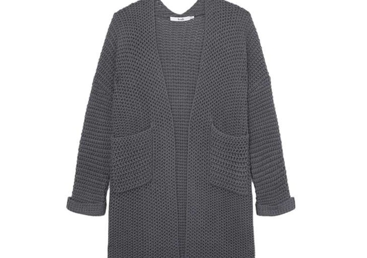 しっかりとした編地が特徴のこのロングカーディガンは、アウターとしても十分な暖かさを備えています。