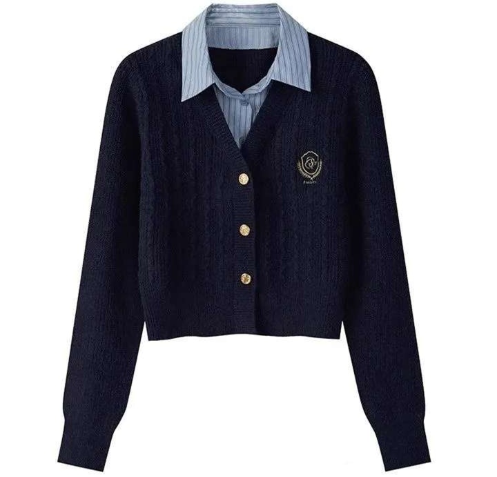 黒いクラシカル学生風ショートカーディガン レディース