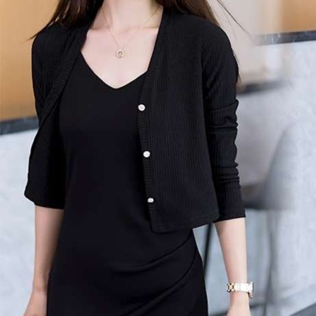 すっきりシルエットの黒いレディースショート丈カーディガン
