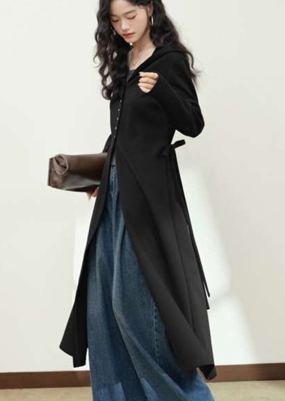 薄手フード付きシンプルロングカーディガン