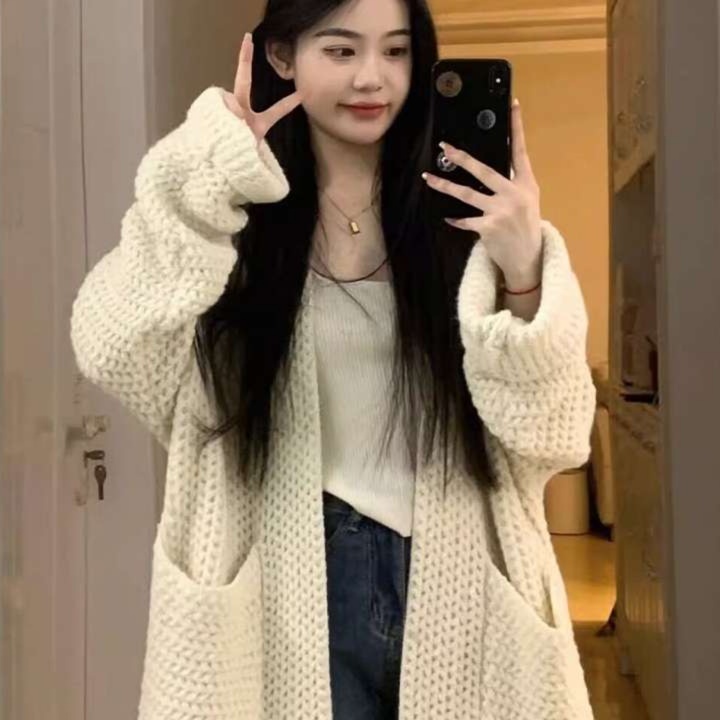 韓国スタイル ざっくり編み冬カーディガン