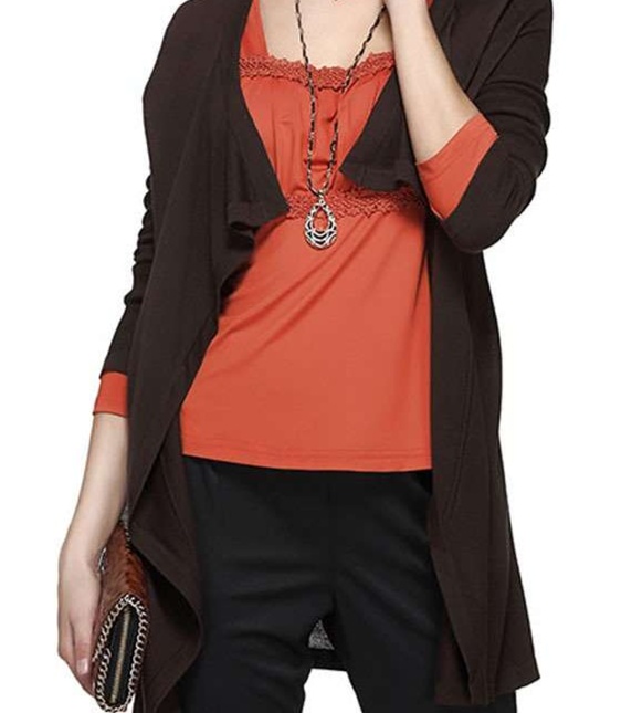 レディースカーディガン かぎ針編みレース装飾ミドル丈カーディガン
