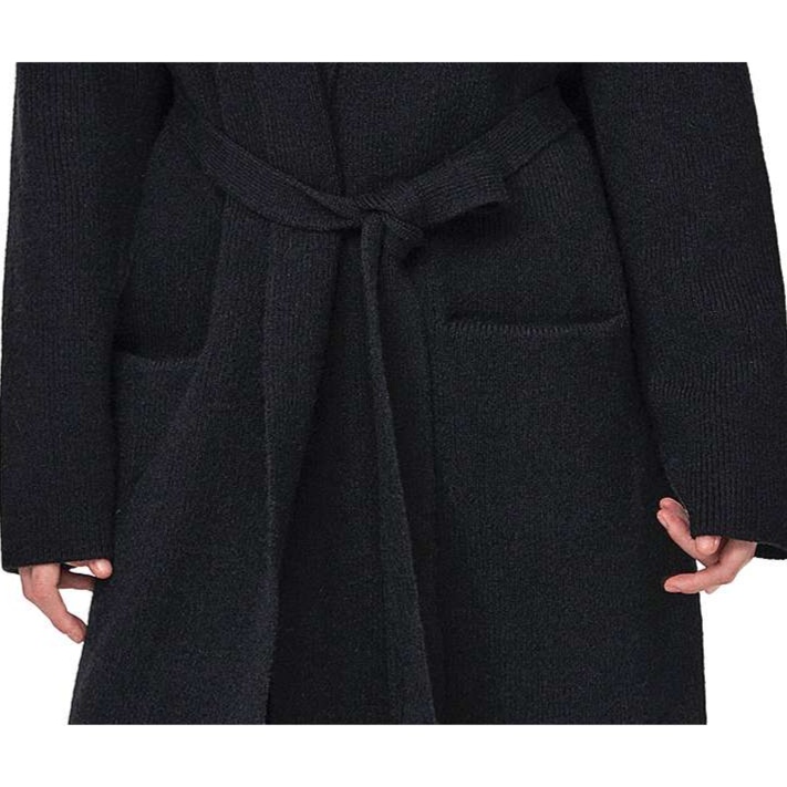 柔らかな肌触りが特徴の黒レディースカーディガン。ロング丈のゆったりシルエットが体型を美しくカバーし、上品な印象を与える一着。シンプルなデザインは多様なコーディネートにマッチし、大きめのポケットが実用性をアップ。デイリーユースから特別な日まで、幅広いシーンで活躍する便利なアイテムです。
