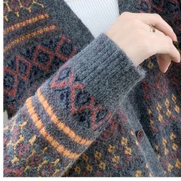 新作のレディースカーディガンが登場。上質なニット素材を使用し、肌触りが抜群のグレーのミドル丈カーディガンです。伝統的な幾何学模様が施され、ゆったりとしたシルエットで体型をカバー。普段使いはもちろん、お出かけシーンにもぴったりの一枚。さまざまなコーディネートにマッチするデザインで、毎日のスタイルを華やかに演出します。
