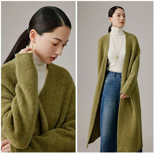 贅沢な羊毛混紡素材で仕立てられたレディースカーディガン。深みのある緑が印象的で、優雅なロング丈が体型を美しくカバーします。ゆったりとした袖元はリラックス感を演出し、快適な着心地を提供。シンプルなデザインは多様なコーディネートにマッチし、普段使いから特別な日まで幅広く活躍するアイテムです。おしゃれを楽しむ女性にぴったりの一枚。