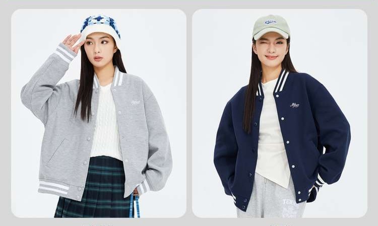 襟元と裾のリブ使いが特徴的な王道のバーシティジャケットスタイル