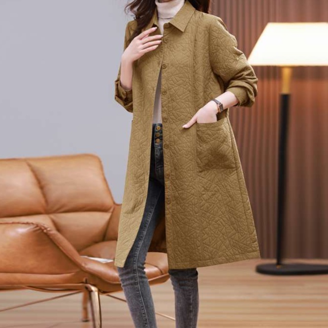 エレガントな襟付きデザインが魅力のキャメル色レディースカーディガン。ロング丈でスッキリとしたシルエットは、カジュアルからきれいめスタイルまで幅広く対応します。大きめポケットと使いやすいボタンが実用性を高め、秋冬のコーディネートに欠かせないアイテム。柔らかな素材感で、心地よい着心地を実現しました。温かみのあるキャメルで、季節感を楽しみながらおしゃれを楽しんでください。