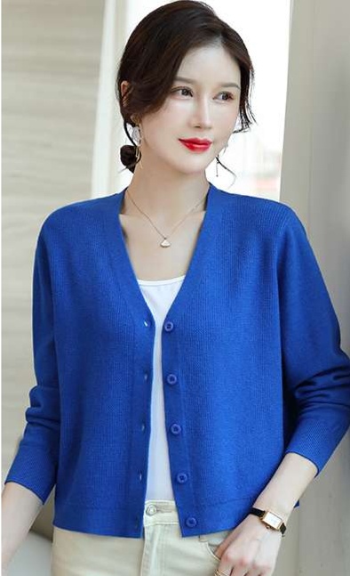 上品なVネックデザインが魅力の青いレディースカーディガン。ショート丈は体のラインを美しく引き立て、洗練された印象を与えます。上質な素材を使用し、軽やかな着心地が特徴で、春秋の季節にぴったり。カジュアルな日常使いからオフィススタイルまで幅広く対応し、大人の女性にふさわしい一着です。シンプルながらもエレガントな雰囲気を醸し出し、コーディネートのアクセントになります。