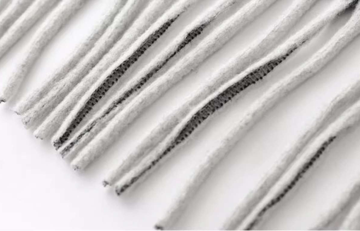 洗練された印象を与える黒のレディースカーディガン。上品な柄と長めのフリンジが特徴で、ロング丈のワンピースとの相性も抜群です。軽やかな素材感により、さらりと羽織るだけでスタイリッシュな装いに。季節の変わり目に重宝する一枚で、ショールのように華やかに楽しめるおしゃれなアイテムです。普段使いから特別な日まで幅広く活躍します。