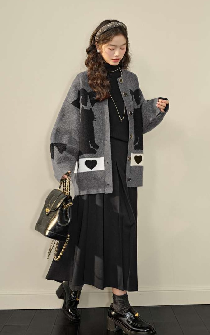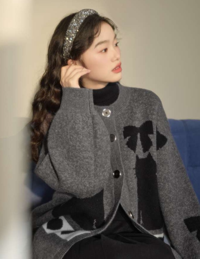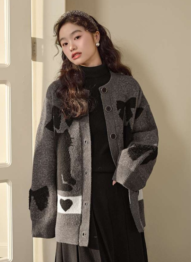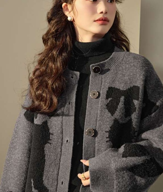 洗練されたデザインのグレーのレディースカーディガンは、優美なシルエットで体型を美しく見せます。ミドル丈のスタイルが魅力的で、柔らかな肌触りの素材は着心地抜群。リボンモチーフが女性らしさを引き立て、独特な模様が個性を際立たせます。金属調のボタンがアクセントとなり、カジュアルからフォーマルまで幅広いコーディネートにぴったり。シンプルながらもこだわりのある一着です。