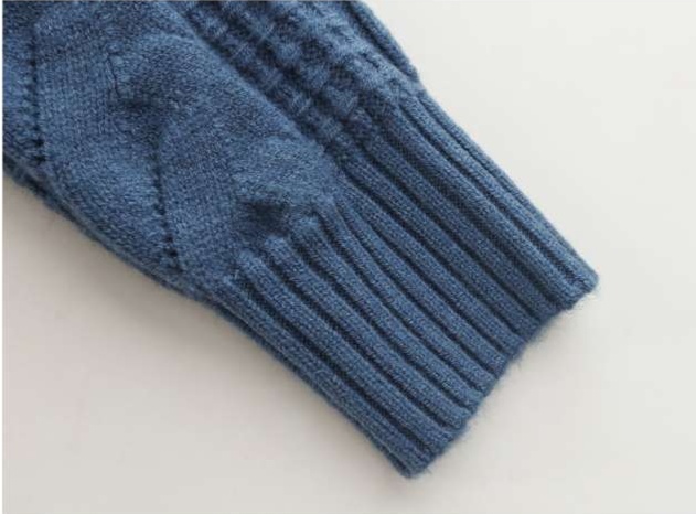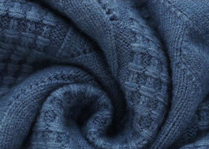ケーブル編みと格子柄を組み合わせた立体的な編み目が、上質で洗練された印象を演出