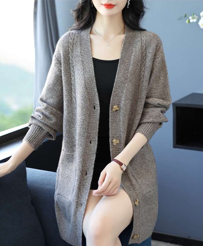 縦のケーブル編みがすっきりとした印象で、洗練された雰囲気を演出