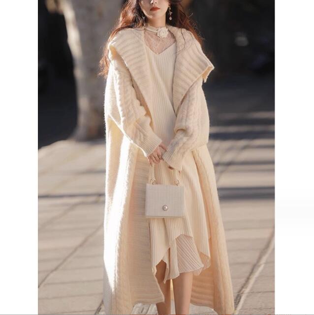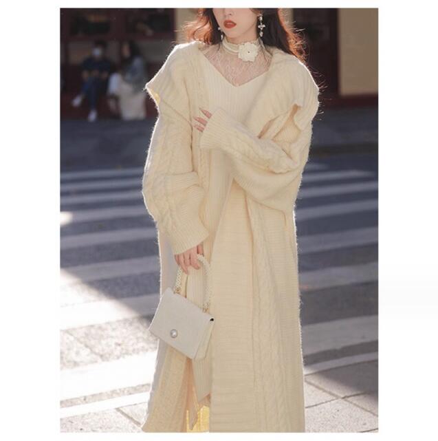 手編み風のケーブル編みが優しく温かな雰囲気を作り出し、季節感のある大人の魅力をアピール