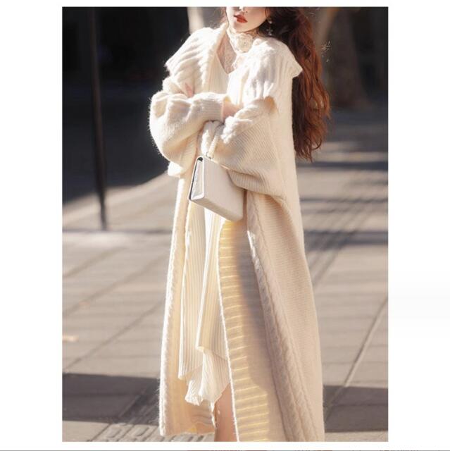 エレガントなベージュカラーが美しいロング丈レディースカーディガンです。