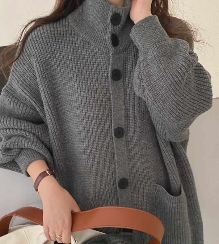 しっかりとした編み目の厚手ニット素材が温かみのある印象を演出し秋冬コーディネートに最適
