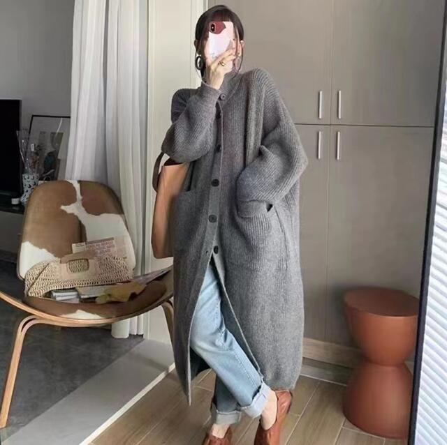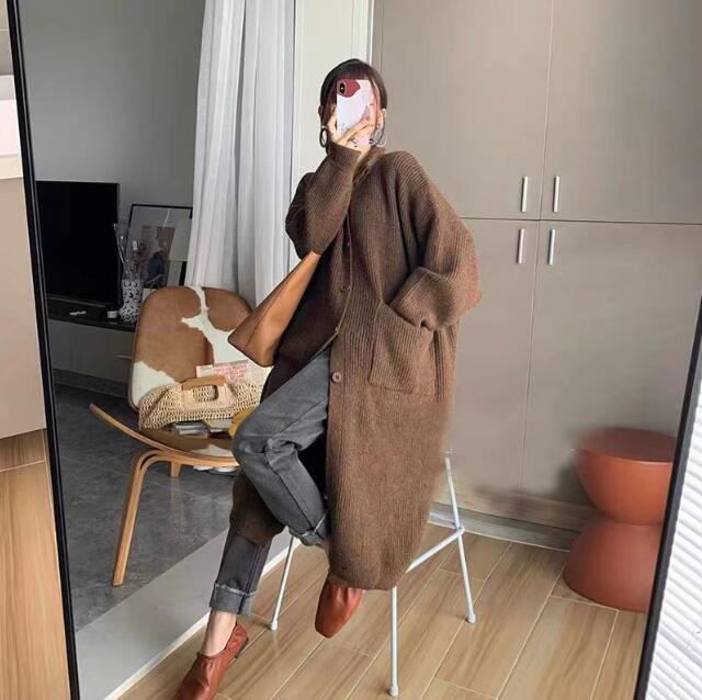 ロング丈でスタイルアップ効果抜群のニット素材。