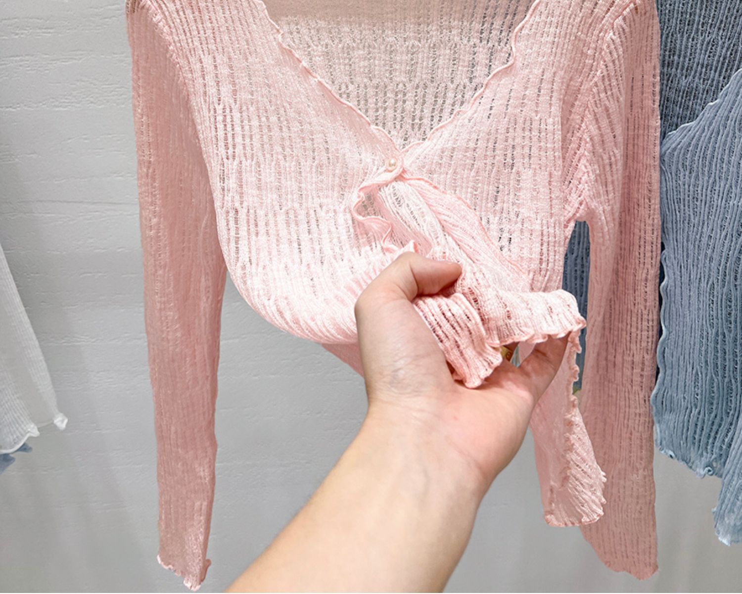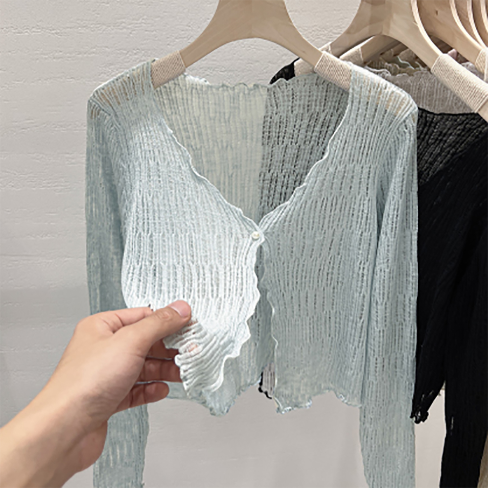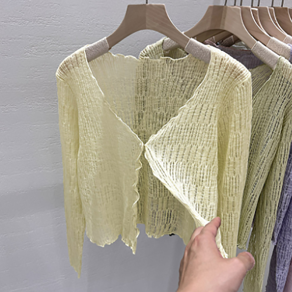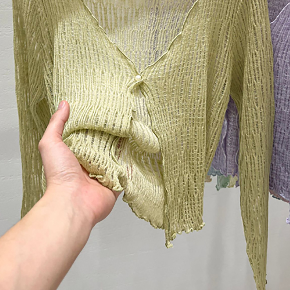 夏にぴったりの透け感が美しいショート丈レディースカーディガンが登場しました。