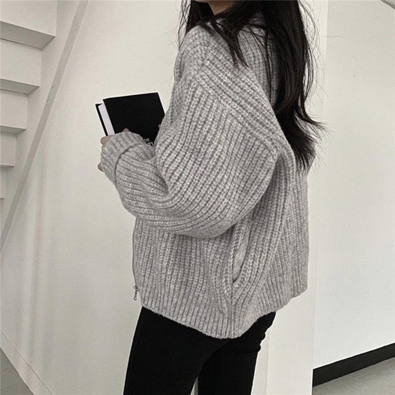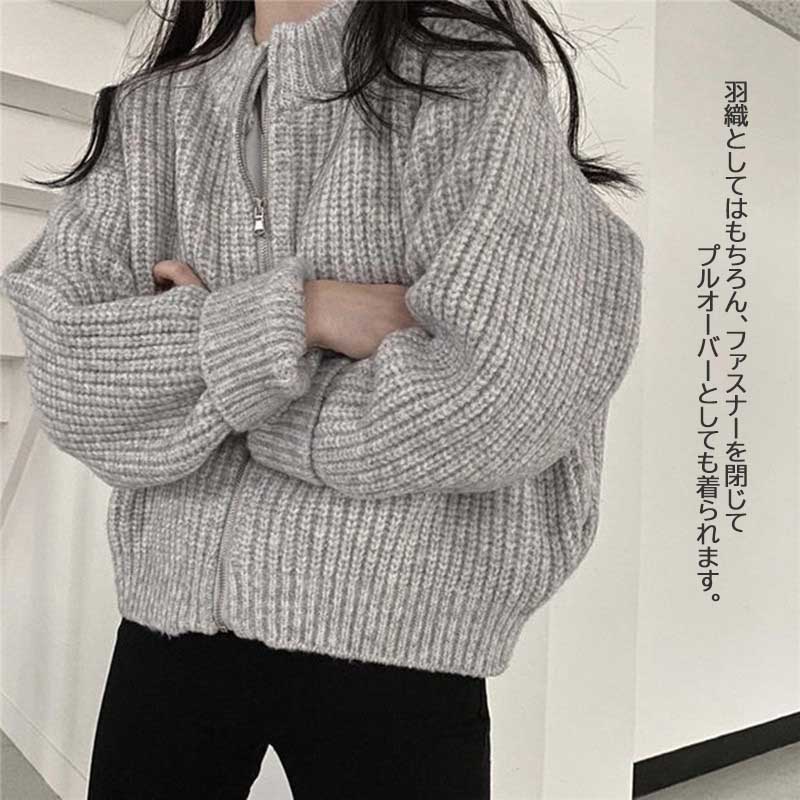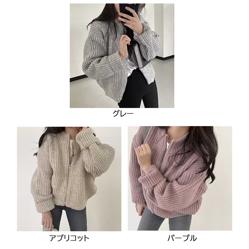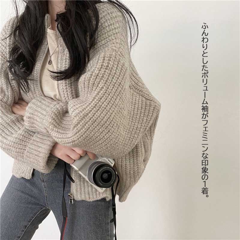 ■コメント ・人気のざっくり編みニット。 ・ふんわりとしたボリューム袖がフェミニンな印象の1着。 ・羽織としてはもちろん、ファスナーを閉じてプルオーバーとしても着られます。 ・大きめシルエットと長め袖で華奢見え効果抜群。 ・お洒落に体系カバーしてくれます。 ■サイズ(単位:cm) FREEサイズ 着丈約56 バスト約120 袖丈約47(OK) ■カラー 商品画像に記載 ■伸縮性 あり ■透け感 なし ■素材 アクリル70%、ポリエステル30%