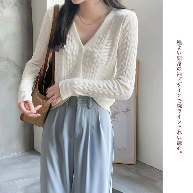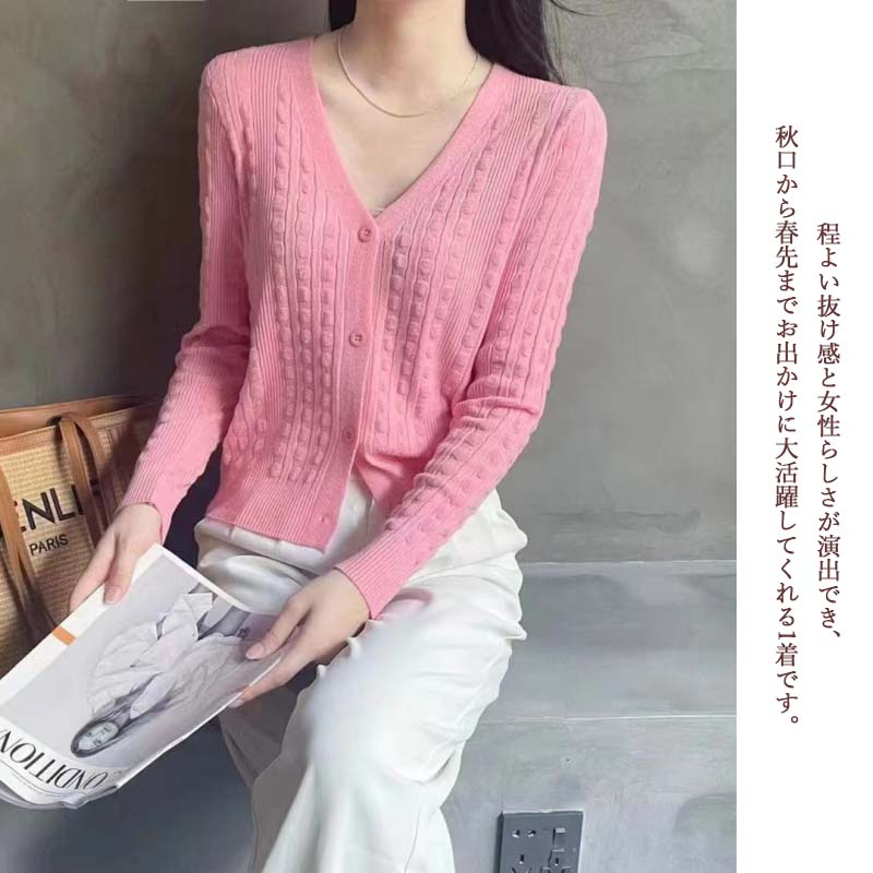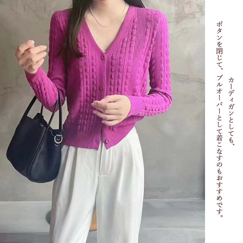 上品なブイネックデザインが美しいレディースカーディガンです。