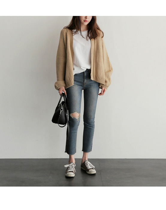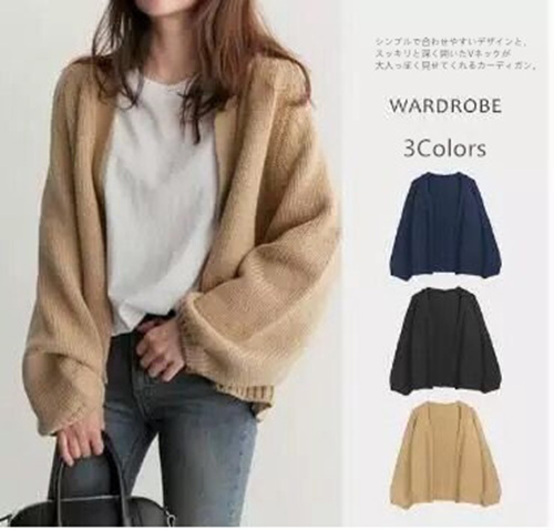 ふんわりと柔らかなざっくり編みが魅力的なショート丈レディースカーディガンです。