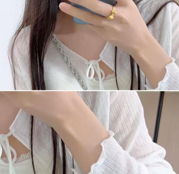 首元のリボン紐が甘くて上品な印象を演出し、女性らしい魅力を引き立てます。
