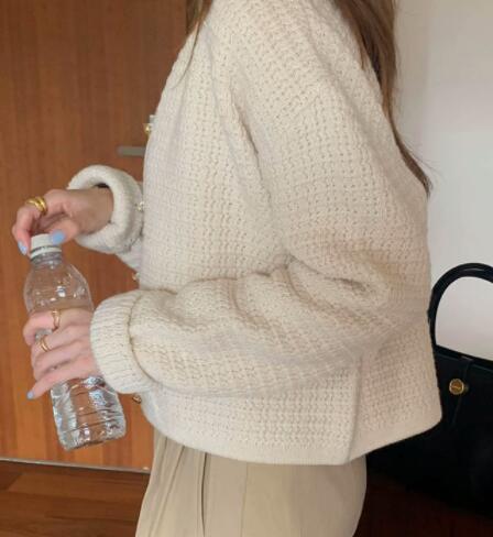 細かな編み目が美しいツイード風の質感で、洗練された大人の雰囲気を演出