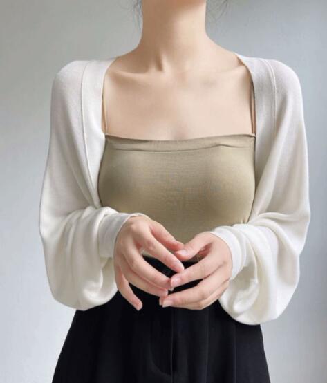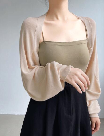 肩掛けスタイルでおしゃれに羽織れるニット素材のトップスです。