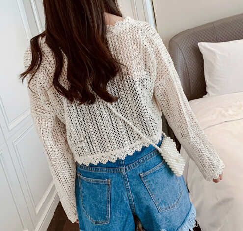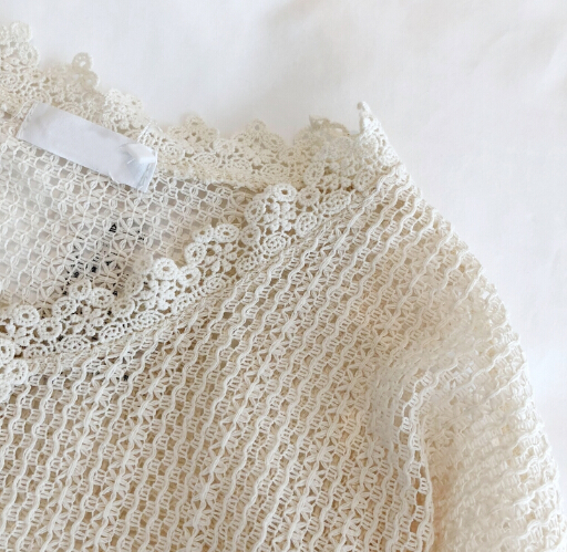 繊細なレース編みの透け感が軽やかで、洗練された印象を演出