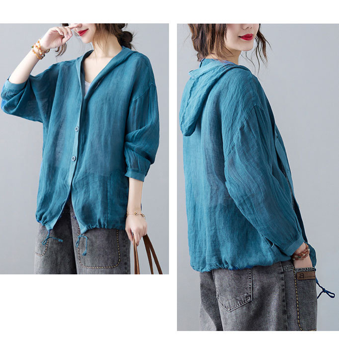 ■コメント さらっと羽織っていただける綿麻素材のフード付きシアーシャツです。 ナチュラルなVネックデザインが女性らしい印象、裾は紐が付きアレンジできます。 袖は7分丈で邪魔にならず、ドロップショルダーのため着やせ効果も期待できます。 トップスとしてサマーアウターとしてご使用頂けます。 程よい透け感があり、今ぽいトレンド感が演出できます。 ロングスカートや、ジーンズコーデなど、きれいめのコーデやワンピースにも合わせやすいです。 さっと羽織っても、コーディネートのワンポイント、UVケア、冷房対策までできます。 軽い着心地がたまらない必修アイテムです。 ■サイズ(単位:cm) 画像に記載XL(OK)L 着丈57(OK)M(OK) ■カラー 商品画像に記載 ■伸縮性 なし ■透け感 あり ■素材 綿85%、麻15%