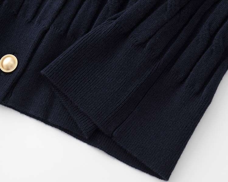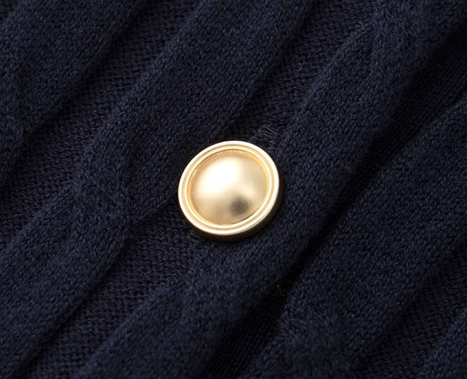上品なゴールドボタンの装飾が、クラシカルで華やかな印象を与える