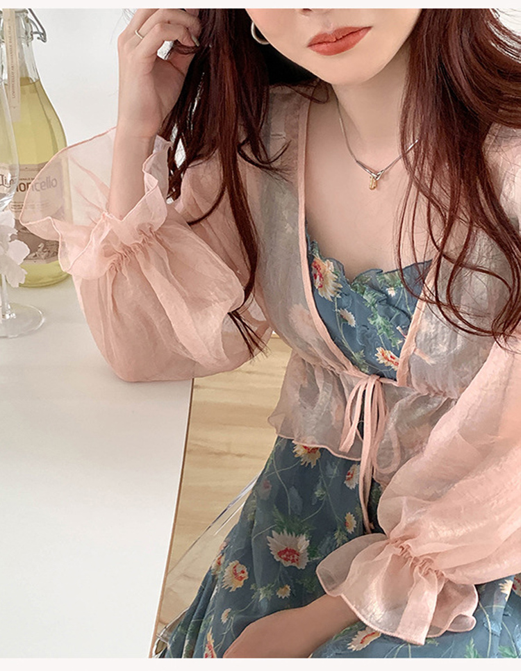 透け感が美しいシースルー素材のショート丈ボレロカーディガン。