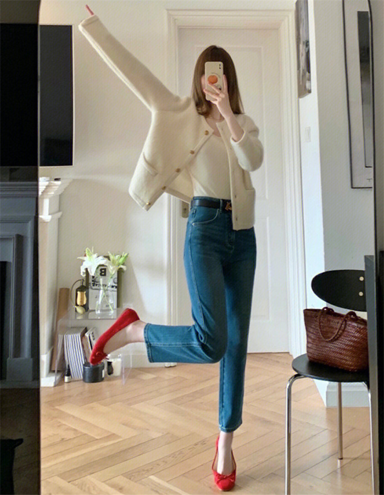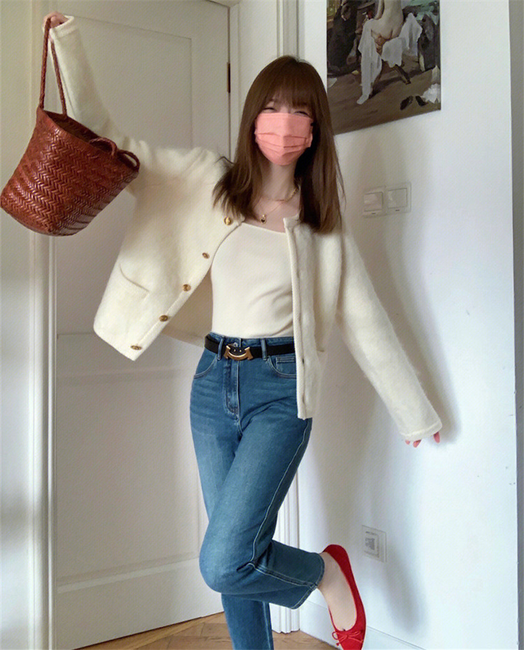 高級感のある金ボタンが特徴的で、秋のコーディネートにぴったり。