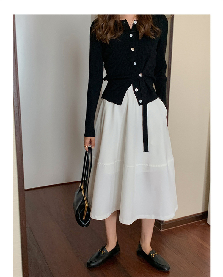 細かなリブ編みが体にやさしくフィットし、すっきりとした縦のラインを演出して上品な印象を与えます。