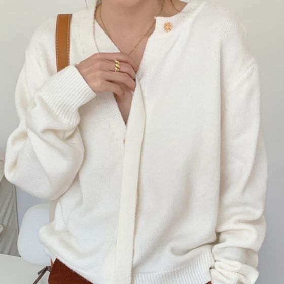 大人の女性にぴったりな上品なショート丈レディースカーディガンです。