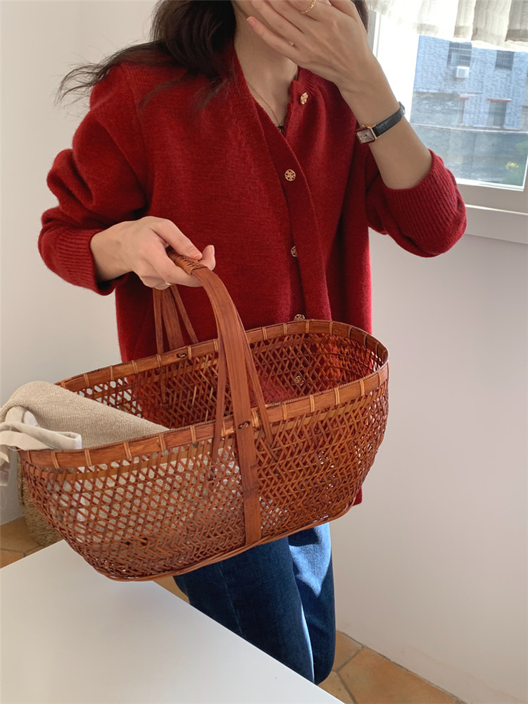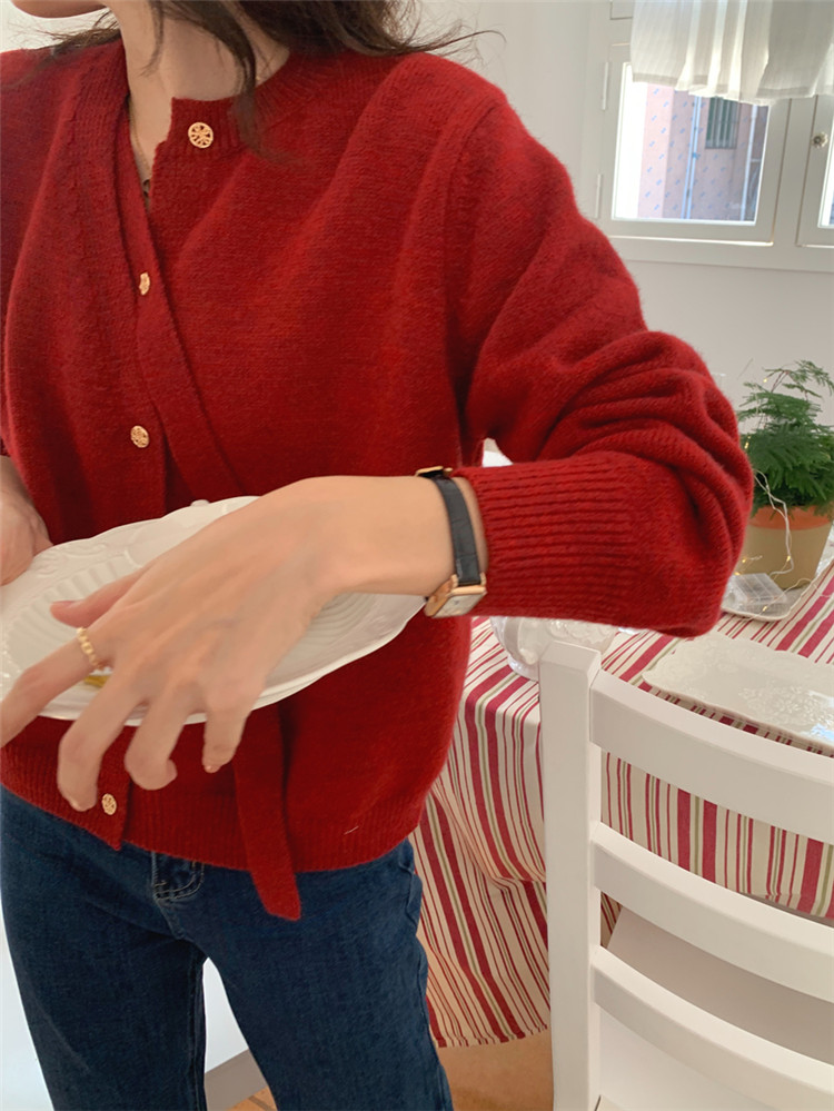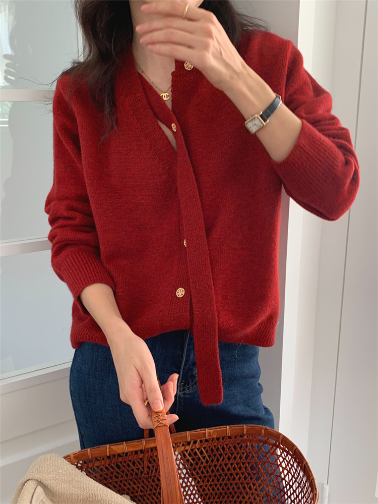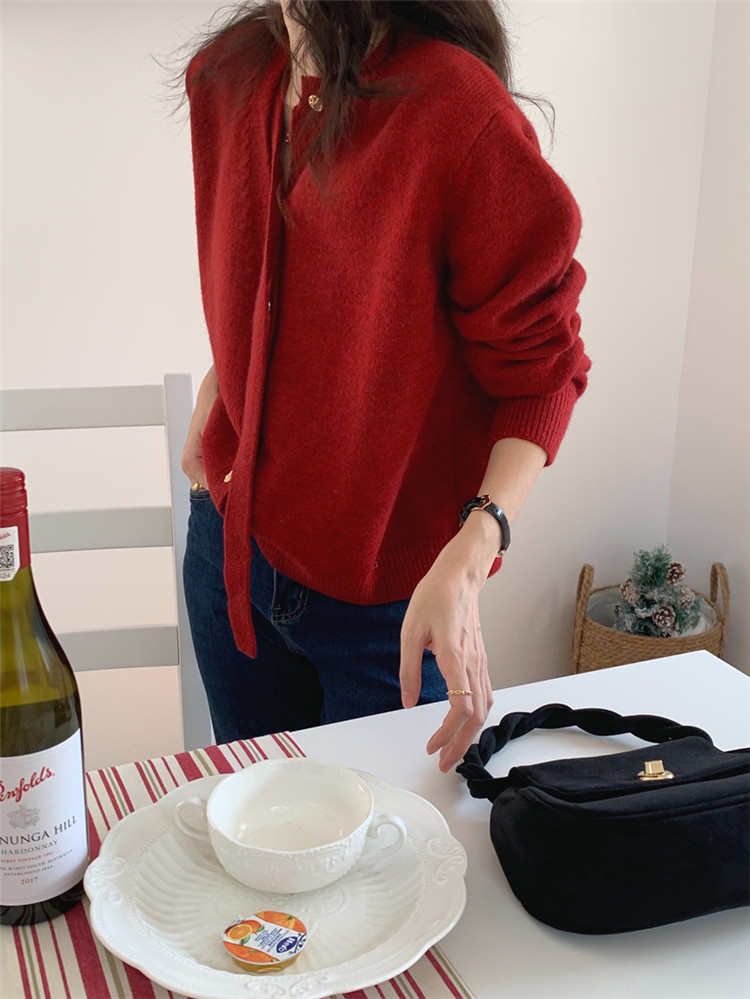 ボタンデザインが気品を演出し、レッドとベージュの2色展開で季節を問わず活躍します。