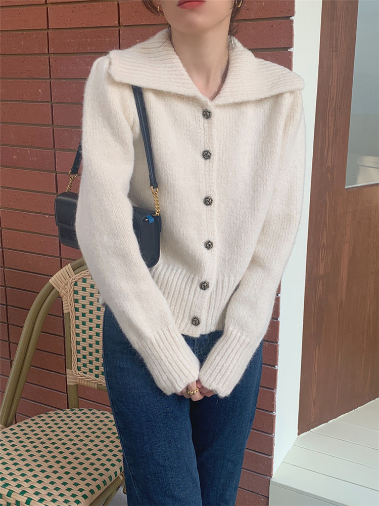 金属ボタンのフロント開きデザインで実用性と装飾性を兼ね備えた仕上がり