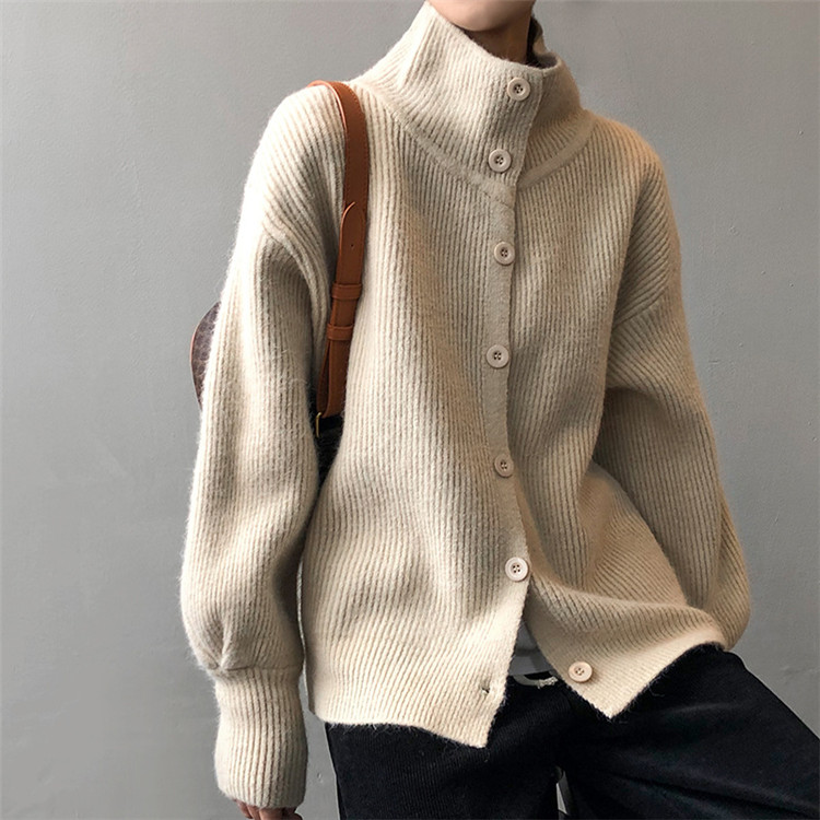 首元をしっかりと包み込むハイネック仕様で防寒性に優れ、上品で洗練された印象に