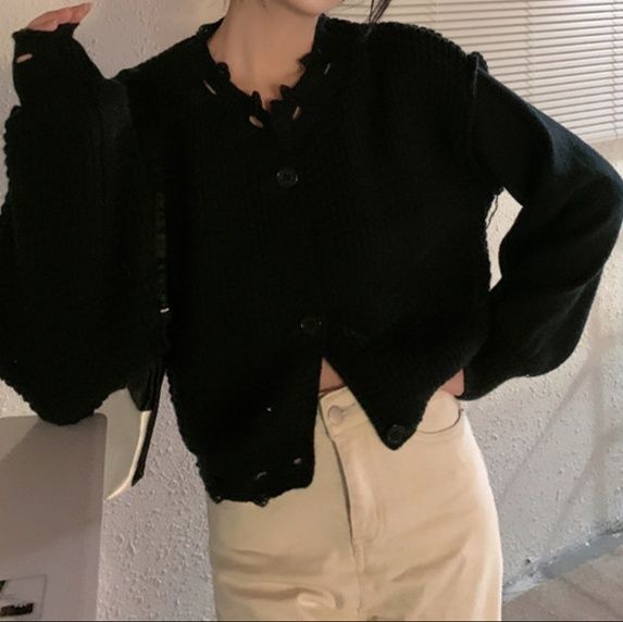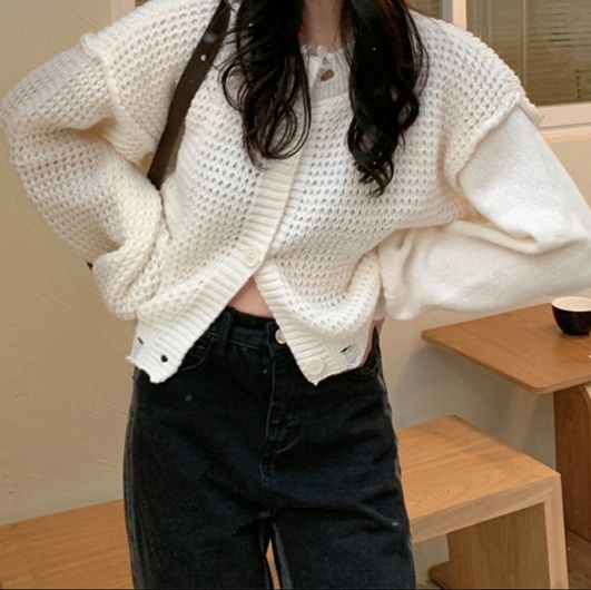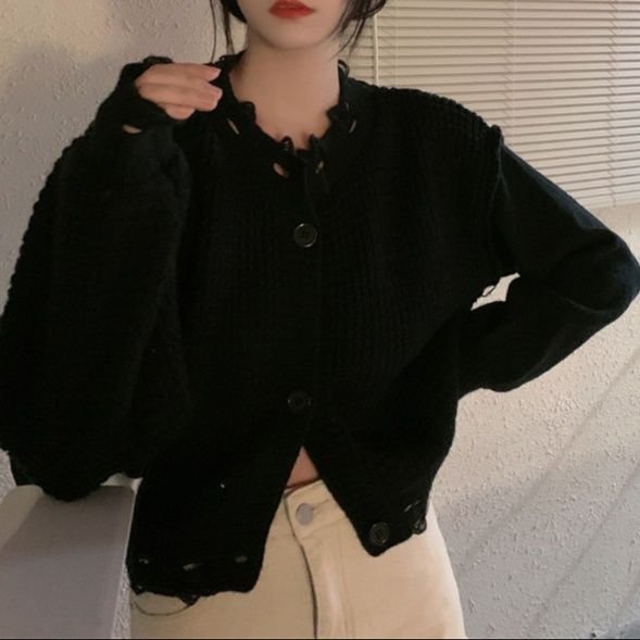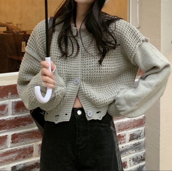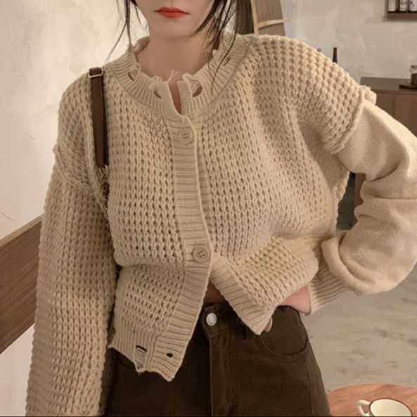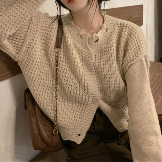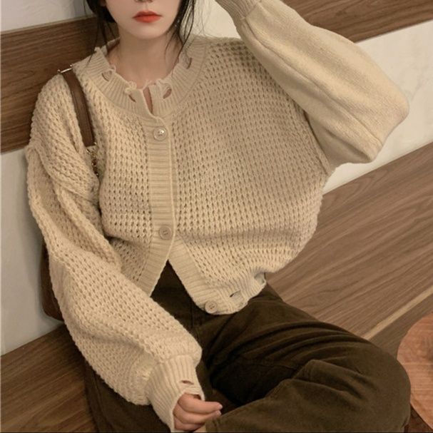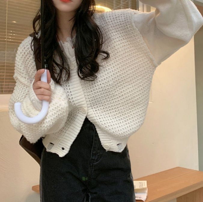 ゆったりシルエットが魅力のショート丈レディースカーディガンです。
