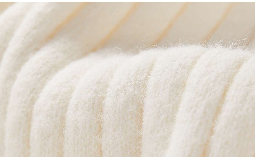 縦のリブ編みが施された生地が、すっきりとした縦のラインを強調しながら暖かみを演出