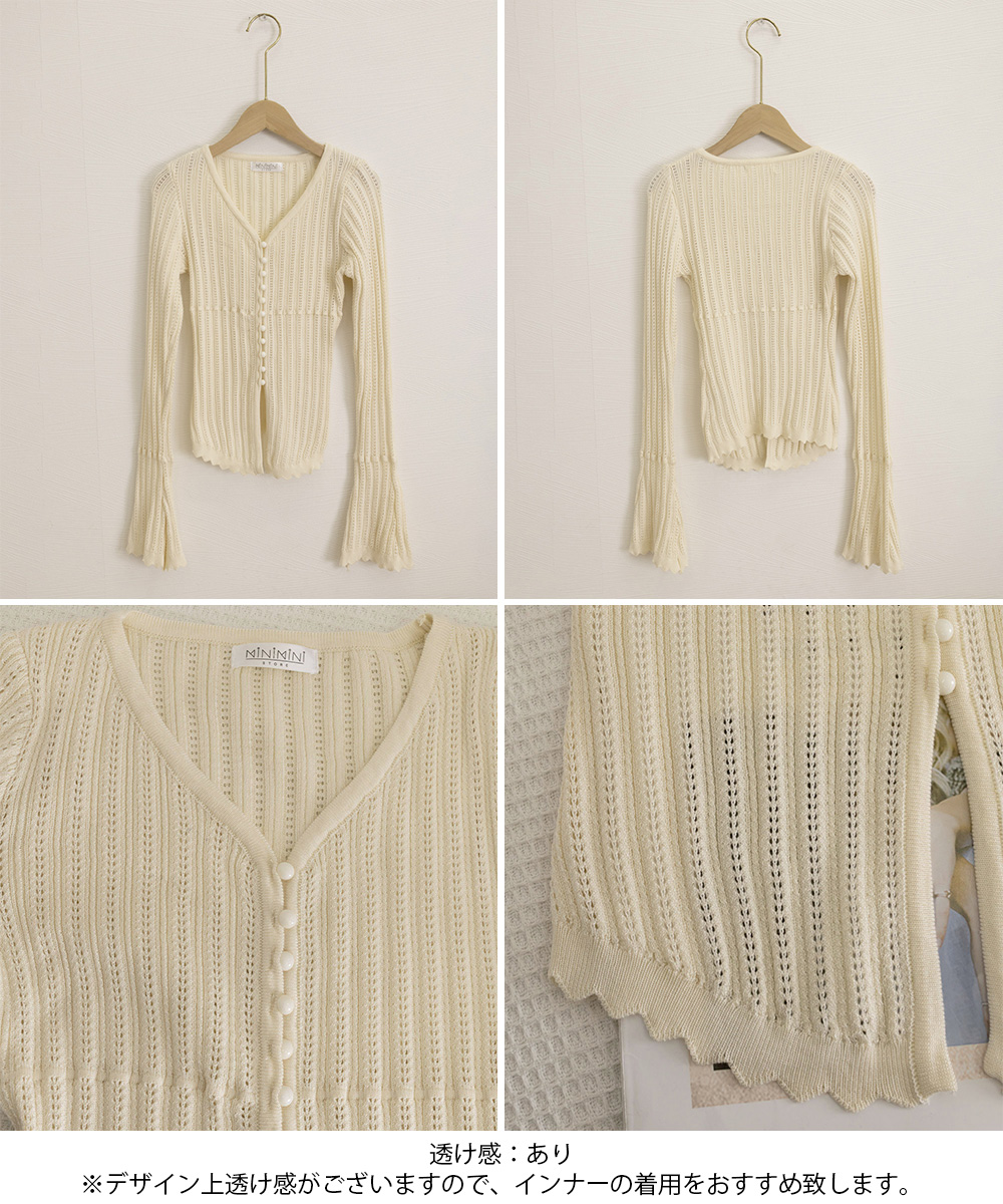 春先から秋口まで活躍する、レディースカーディガンの透かし編みショート丈ニット。
