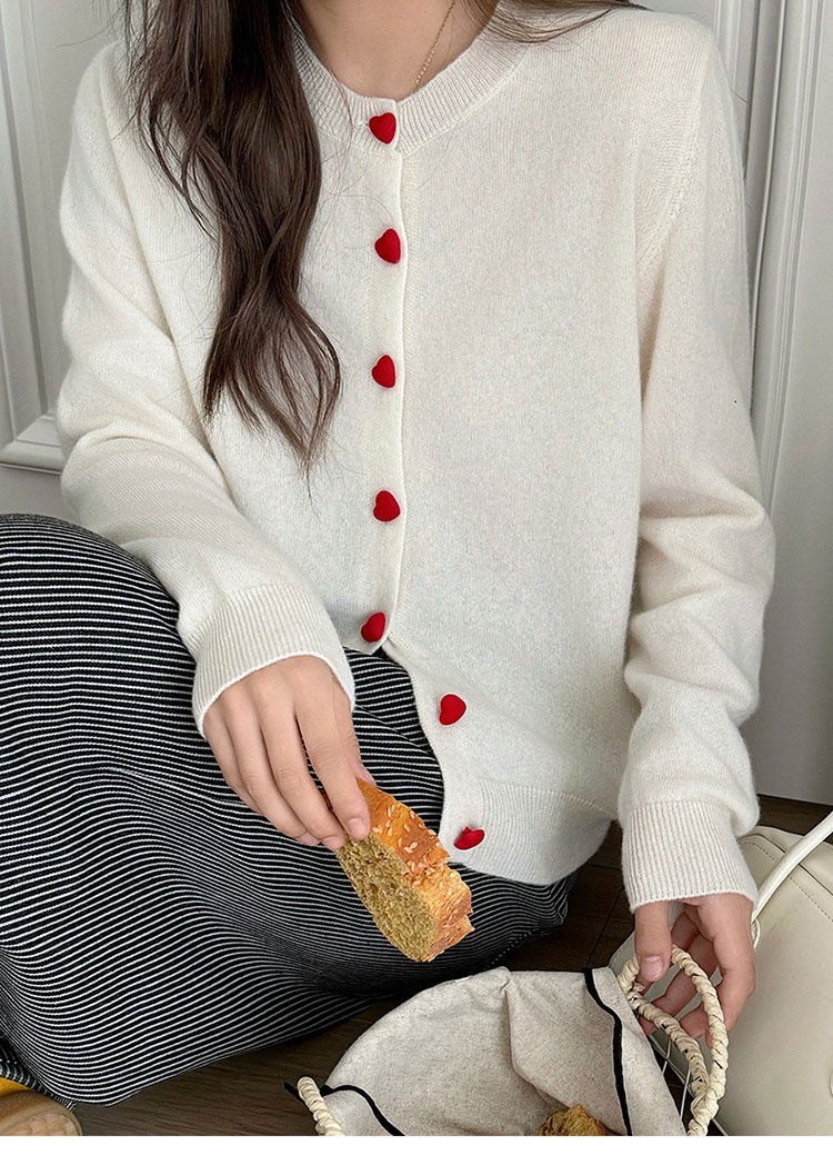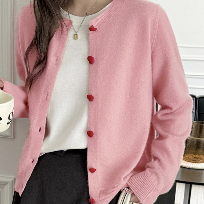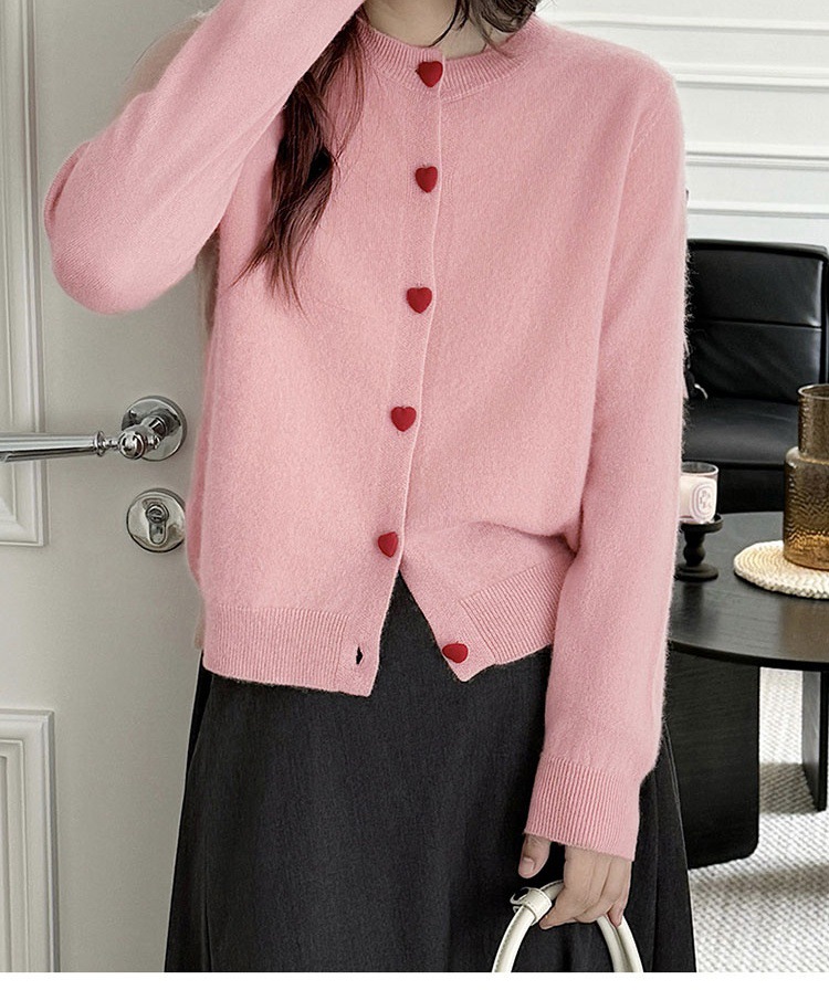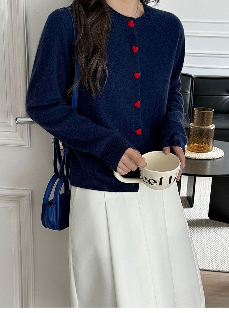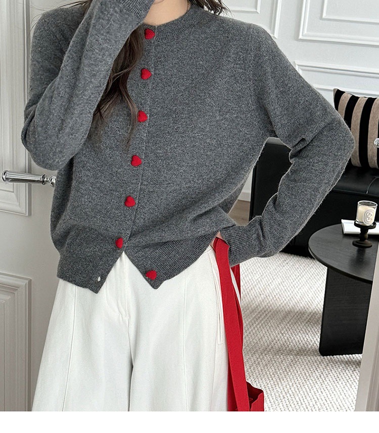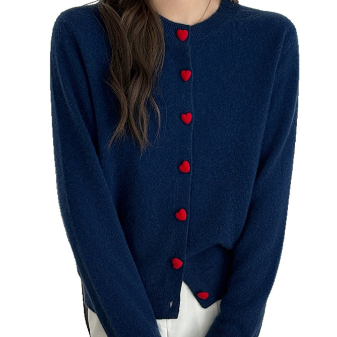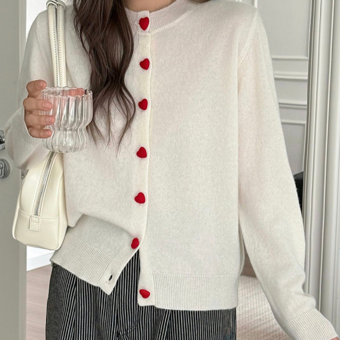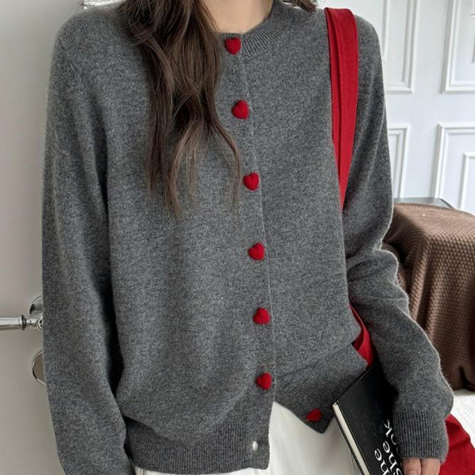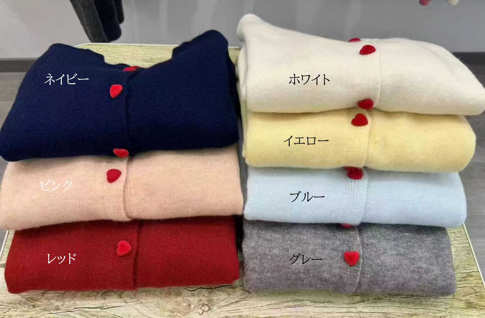 可愛らしいハートボタンが印象的なレディースカーディガンです。