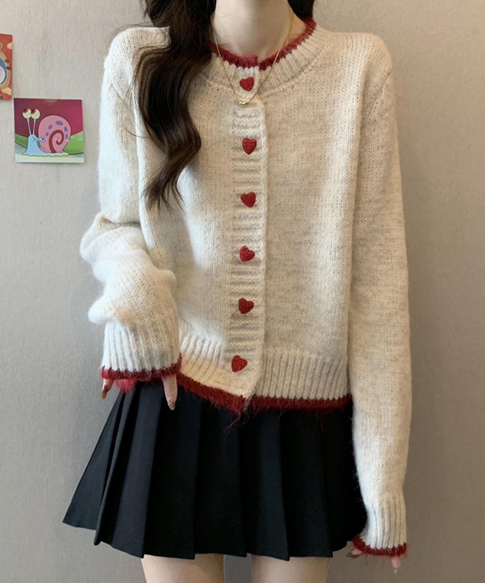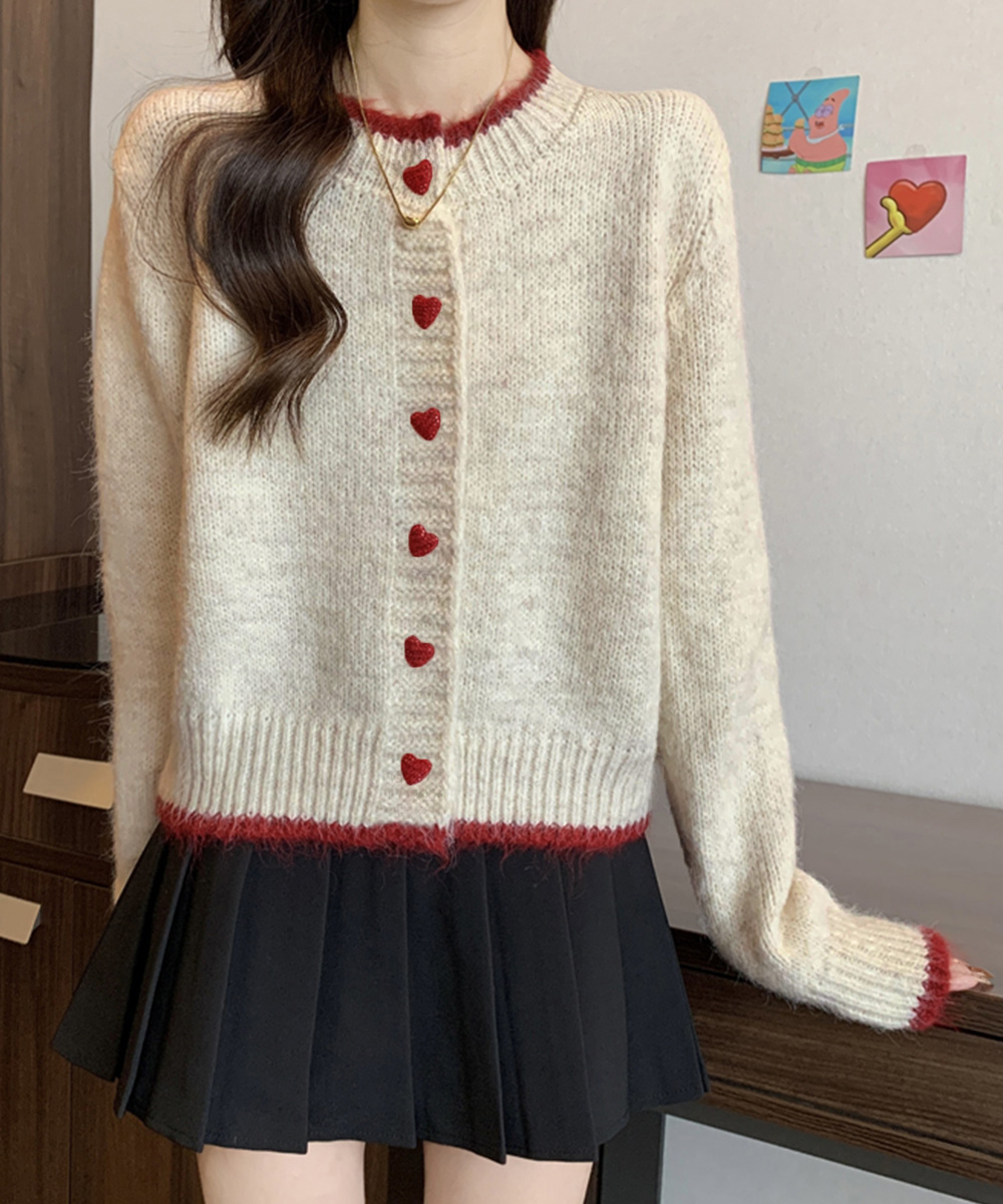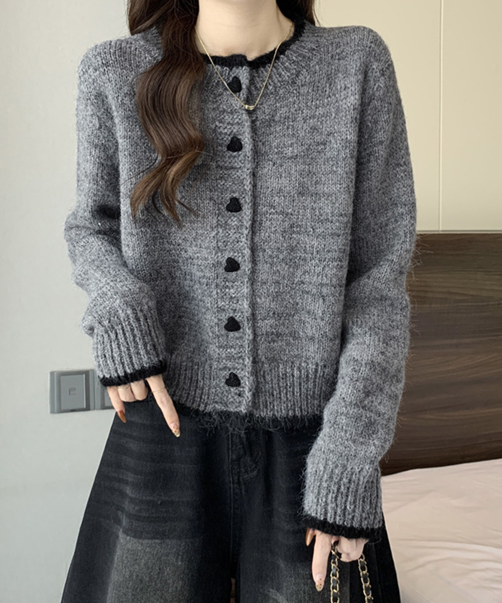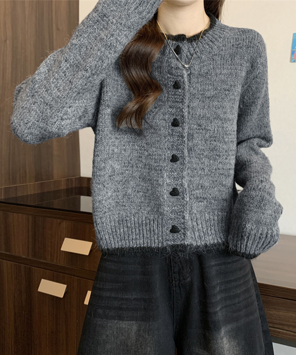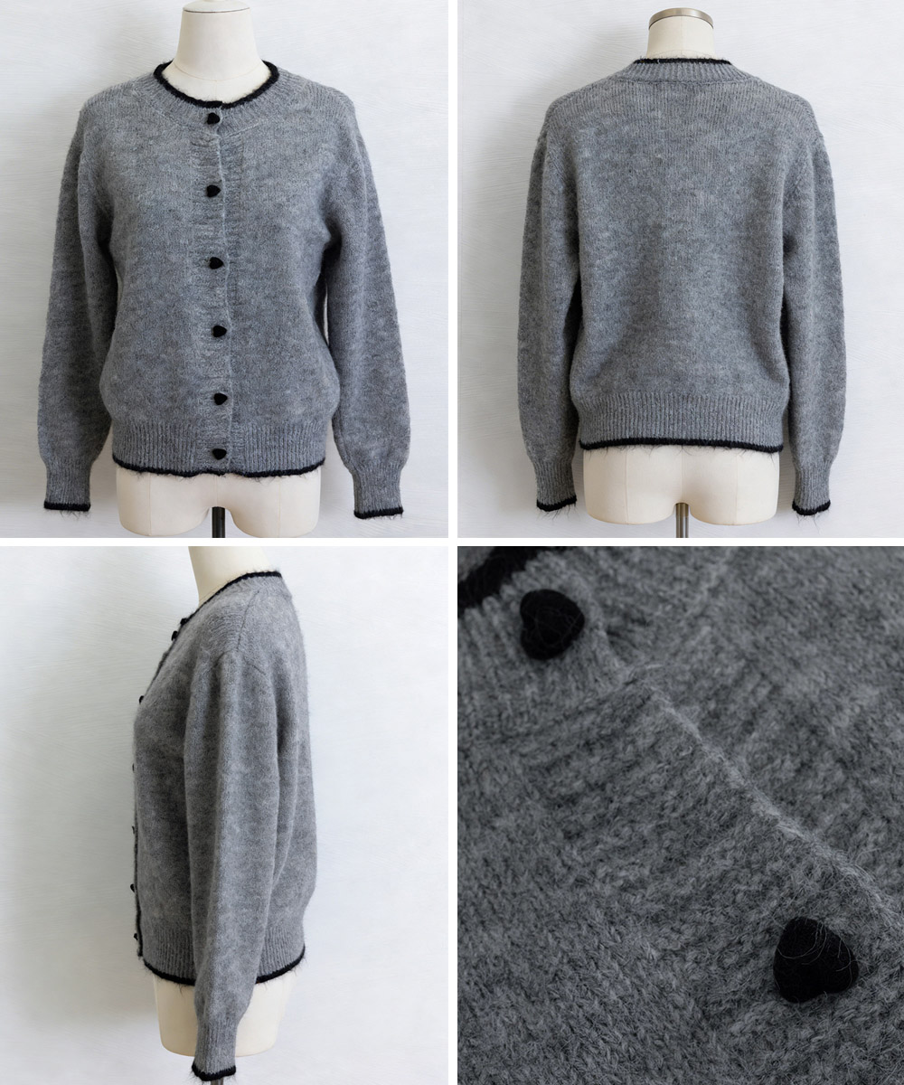 可愛らしいハートボタンが印象的なショート丈レディースカーディガン。
