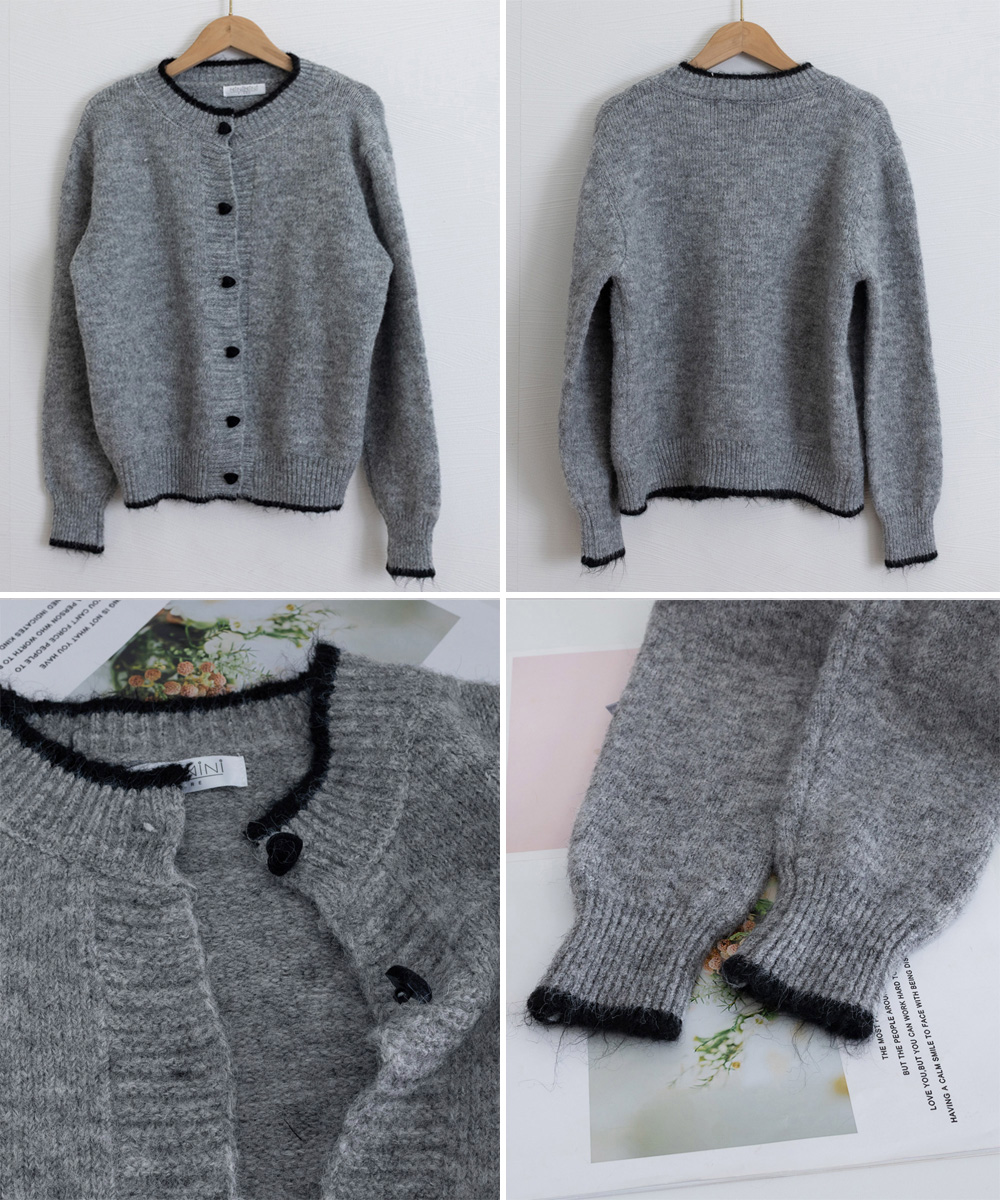 配色の襟と裾がアクセントとなり、シンプルながら上品な仕上がりです。