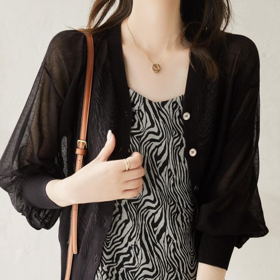 薄手のニット素材で軽やかな着心地を実現し、春秋のシーズンに最適な一枚となっています。