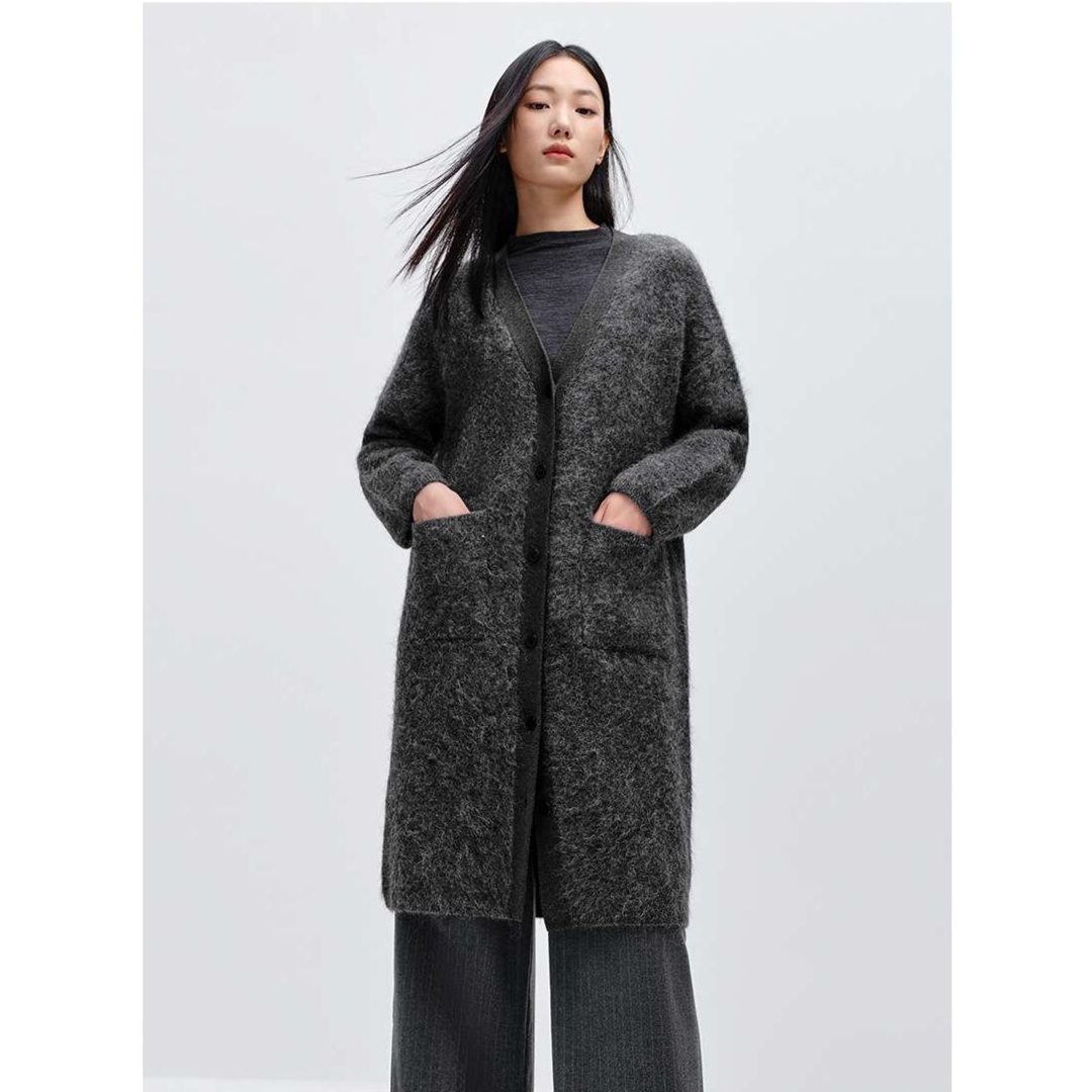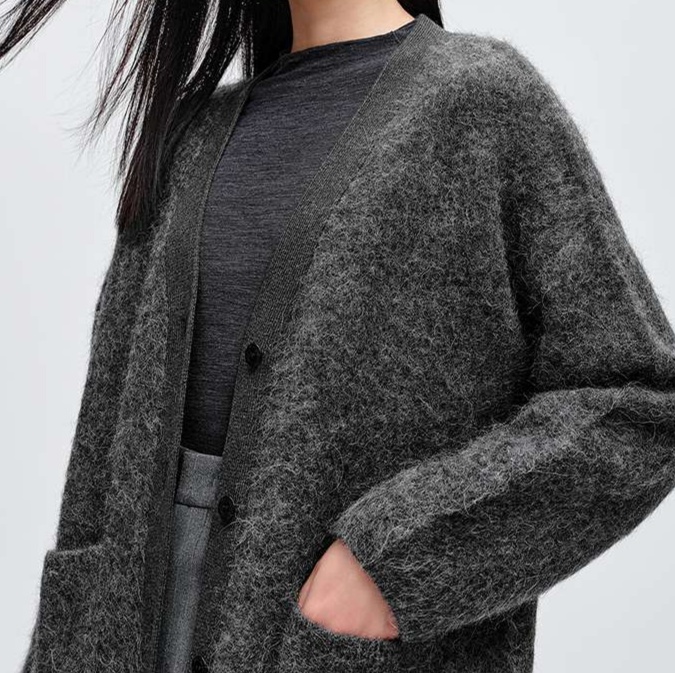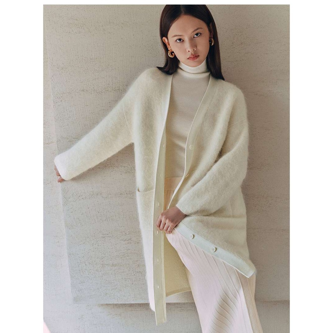 滑らかな肌触りと高級感漂う風合いが魅力の白いレディースカーディガン。ロング丈のデザインはプリーツスカートとも好相性で、華やかさを引き立てます。大きめのボタンと程よいゆとりのシルエットが、暖かさとエレガントさを兼ね備えた一着。ふんわりとした質感は女性らしさを演出し、日常のコーディネートに最適なアイテムです。デイリーユースにも特別な日にも活躍する、心地よい着心地をお楽しみください。