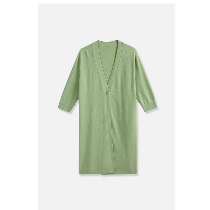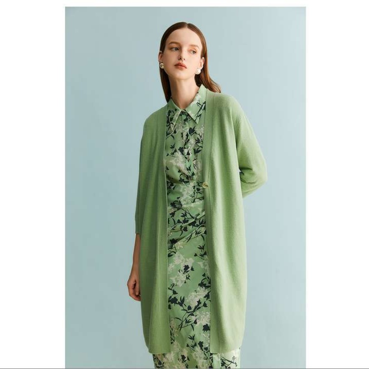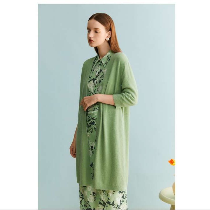 洗練された薄手ニット素材のロングカーディガンは、季節の変わり目にぴったりな一着。美しい緑色が、花柄ワンピースとのコーディネートを引き立てます。軽やかな七分袖デザインで、リラックスした着心地を楽しめます。これ一枚で、上品さとカジュアルさを兼ね備えたスタイルが完成します。どんなシーンでも活躍する、女性らしさを引き立てるアイテムです。