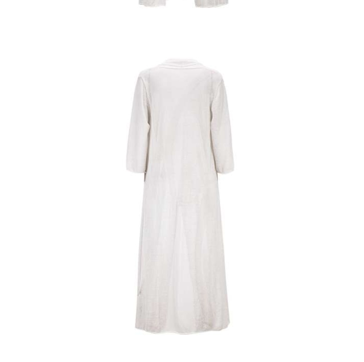 透け感が美しい白のレディースカーディガンは、軽やかな着心地で春夏のマストアイテム。ロング丈のデザインが上品さを引き立て、ボーダートップスやワイドパンツとの組み合わせも絶妙。シンプルながら洗練された雰囲気を醸し出し、どんなスタイルにもマッチ。大人の女性にふさわしい、エレガントなコーディネートを実現する一着です。