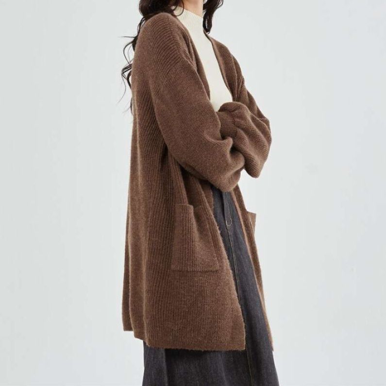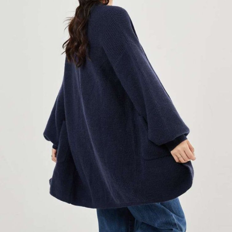 爽やかな青色が印象的なレディースカーディガン。ゆったりとしたシルエットとロング丈デザインが体型をカバーし、大人かわいい雰囲気を演出します。袖のボリューム感と背面の流れるラインが美しく、カジュアルなスタイルからきれいめまで多様なコーディネートにマッチ。デイリー使いに最適な重ね着アイテムとして、季節を問わず活躍します。あなたのワードローブに欠かせない一着です。
